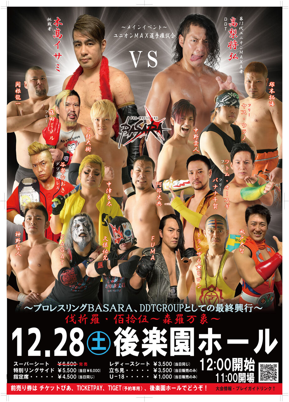 プロレスリングBASARAは、10月1日 DDTグループから独立します(完全独立は2020年1月1日)。 自社HP開設は完全独立後を予定しておりますので、それまでのあいだ、こちらをご案内の場とさせていただきます。